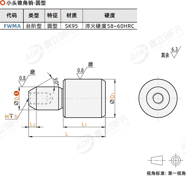 种类: 小头锥角销类型: 台阶型特征: 圆型材质: SK95