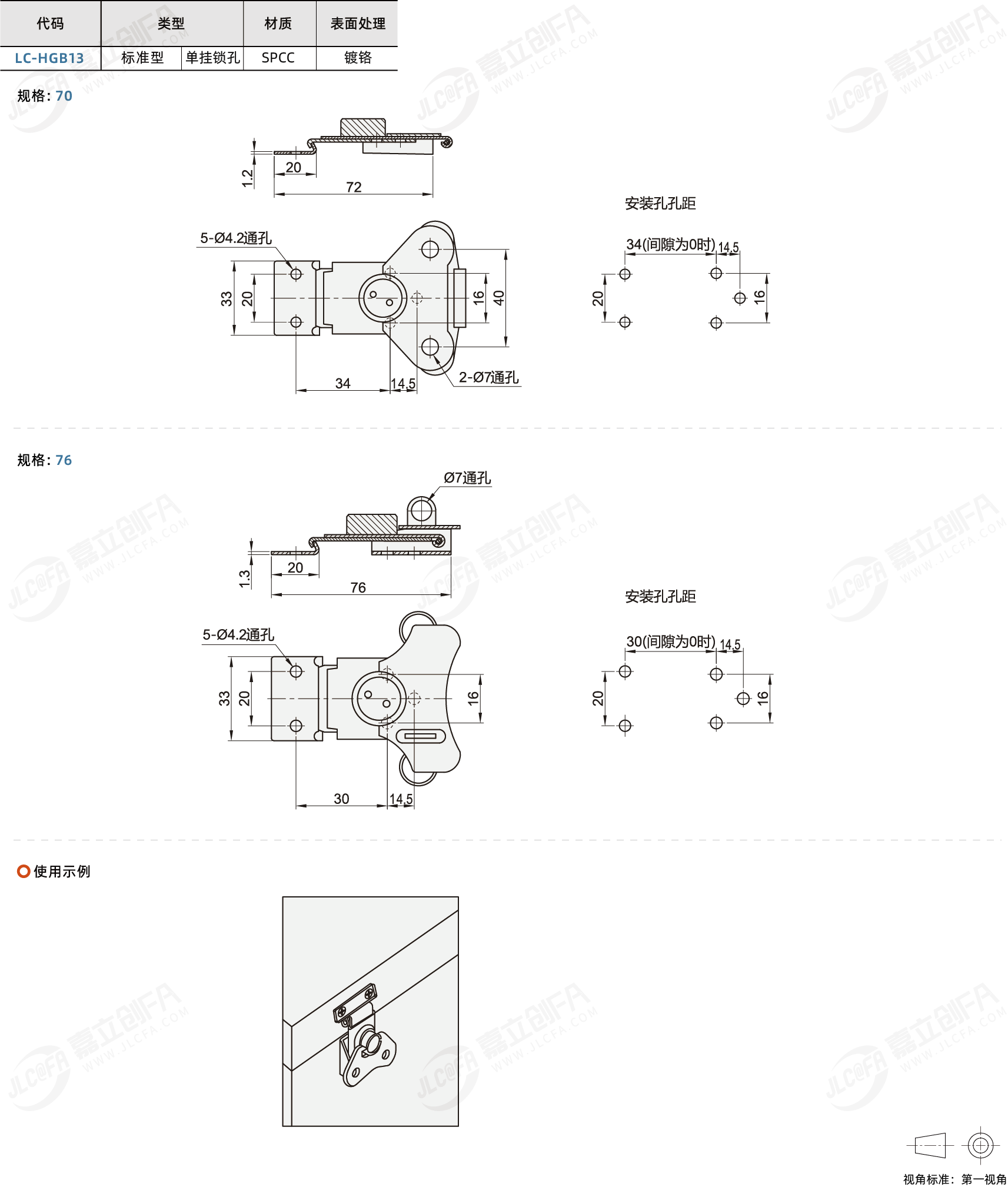 锁扣 标准型 单挂锁孔 SPCC 镀铬