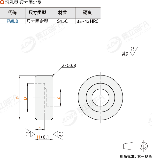 圆形挡块 沉孔型 尺寸固定型