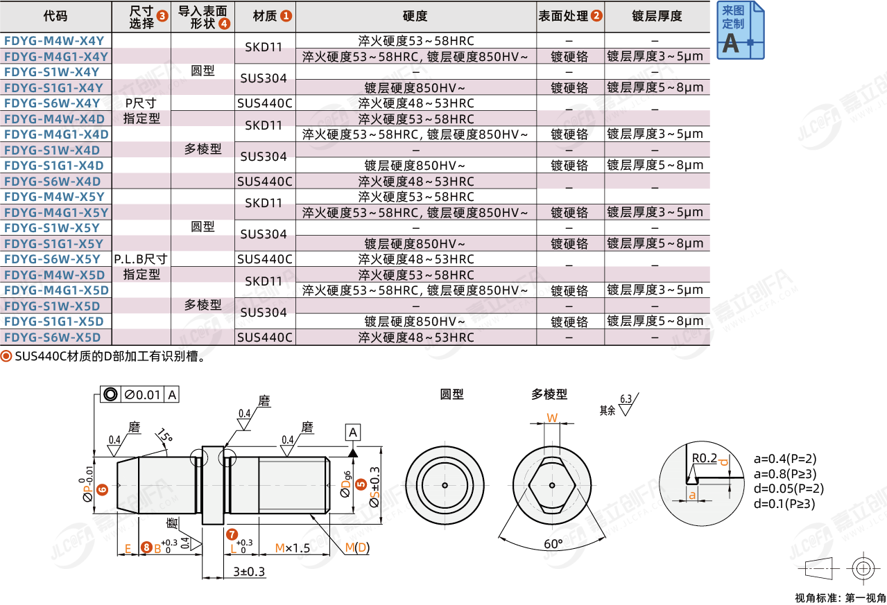 FDYG-M4G1-X5Y淬火硬度53~58HRC,镀层硬度850HV~镀硬铬镀层厚度3~5μm