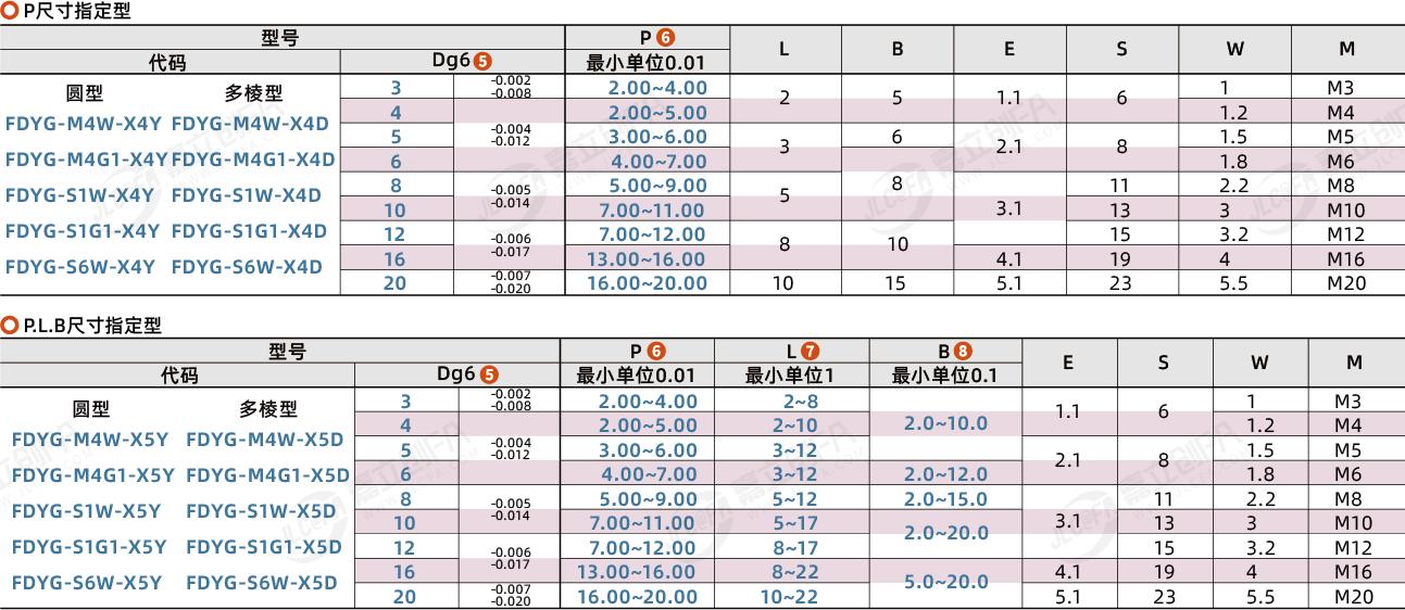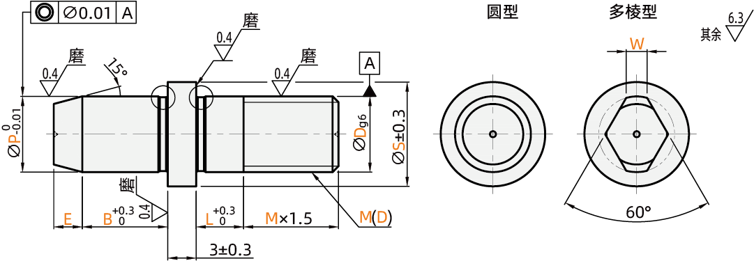 特点2:导入部为锥角形的标准类型。压入使用,可指定压入部公差:m6、p6、g6。
