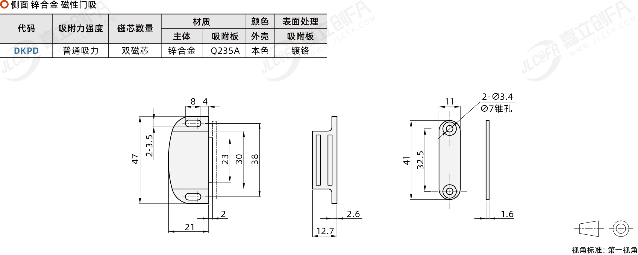 标准磁力扣 侧面 锌合金 磁性门吸